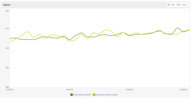Using a 10 second resolution with the ‘mean’ aggregation method, we’ve already reduced a fair amount of the noise. However, this is a visual representation only and does not allow us to do much with the data. These are also both measuring the same depth, so a combined value would be even better. To accomplish this, we’ll set up a third device attribute called combinedDepth.